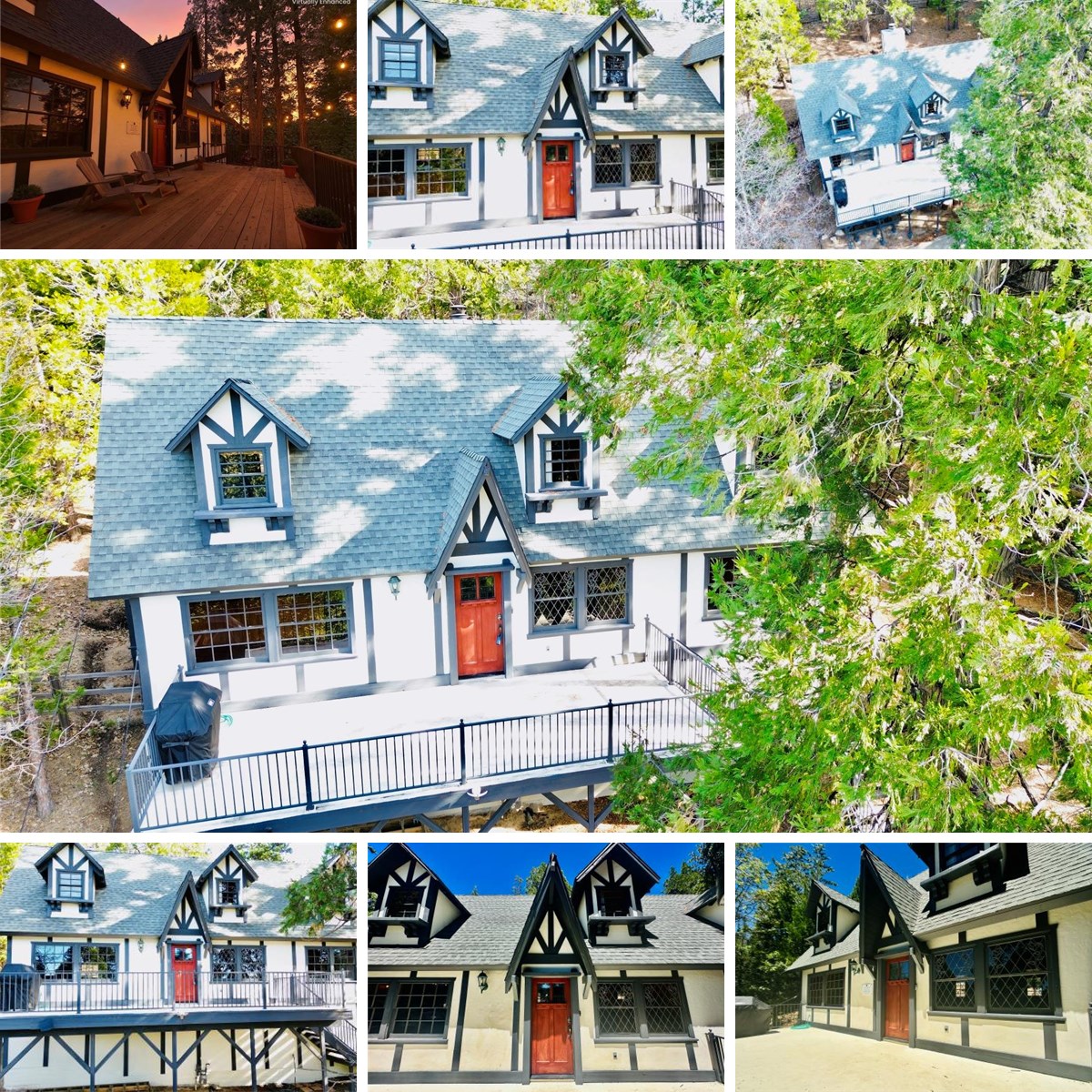 Nestled beneath towering pine trees, this charming 3-bedroom, 2-bath mountain cottage in Lake Arrowhead offers character at every turn—complete with full lake privileges. Inside, a bright, open floor plan features vaulted ceilings, a cozy loft, and freshly stained wood accents throughout. Expansive windows frame peaceful forest views, filling the home with natural light and a warm, storybook feel. The updated kitchen is fully equipped, and the upstairs laundry adds everyday convenience. Step outside to the spacious front deck and take in sweeping treetop and golf course views and crisp mountain air—your own private alpine retreat. With all appliances included, this home is truly move-in ready. The backyard features a fully fenced area along with a level space ready for your future plans. Ideally situated within walking distance to the Lake Arrowhead Country Club.